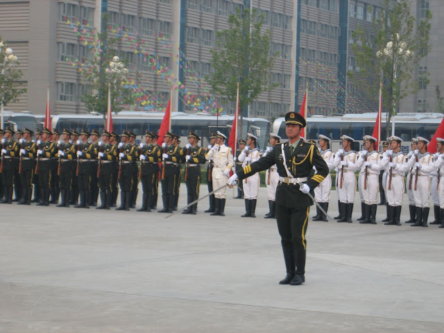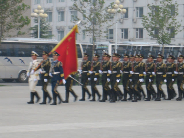 在建国59周年这一特别的日子里,作为一个来自最基层的小女人,能这样走进中国人民解放军陆海空三军仪仗队的营地,能与仪仗队的旗手这样零距离地合影留念,这无疑是我们生命中不可能抹尽的一段记忆......