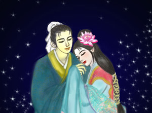 | 今夜我们相处两地,玉簪银河隔不断卿卿之情,两地之遥阻不了郎情妾意,我俩亦有心灵相约的鹊桥! |
