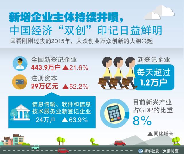 回看刚刚过去的2015年,大众创业万众创新的大潮兴起。新登记企业每天超过1.2万户,“创客”从一个生僻词变得广为人知,“双创”成为中国经济的一抹亮色。 全国新登记企业去年达443.9万户,比上年增长21.6%,注册资本29万亿元,增长52.2%,均创历年新登记数量和注册资本总额新高。其中,信息传输、软件和信息技术服务业新登记企业24万户,同比增长63.9%。 工商总局新闻发言人于法昌指出,新注册企业在新产业、新业态领域快速发展,为经济结构调整注入了新活力,形成经济发展新动能。 创业者对市场保持着最为敏锐的嗅觉。专家指出,创业创新的行为大部分都是在新的领域,从事一些新业态、新模式,促进新的成果转化,逐渐汇聚成在新兴产业发展的强劲势头。 “过去总说新兴产业发展‘远水解不了近渴’,现在新兴产业占GDP的比重达到了8%。”国家发展改革委高技术产业司负责人沈竹林说。 除了新设企业井喷外,创新创业平台在全国遍地开花。截至去年底,各类科技企业孵化器超过2500家,培育和认定小企业创业创新基地4000多家,各地创新创业服务体系也日趋完善。 创业投资是大众创业万众创新的“晴雨表”。去年全年创业投资的募集资金用于中国内地投资资金的增长量超过80%,发生的投资案例数增长了1倍以上。 在天使投资、创业孵化器这些看上去“高大上”的名词为人熟知的同时,“双创”热潮并没有落下广大的农村地区。在这里,创业高潮也已经到来。 “80后”农场主胡韬就是返乡创业大军的一员。结束“北漂”生活,他2014年回到家乡广西桂林,承包山林开起了生态农场,养殖生态土鸡,生意越做越大,市场已经拓展到北京、上海等大城市。 还有更多农民搭上了“互联网+”的快车。记者在华北平原一个普通的小村镇看到,申通、中通等几大快递已经在这里安营扎寨,京东服务点也挂起了招牌。农民轻点鼠标,就能买到网上各种商品,更重要的是能把自家生产的土特产卖到全国各地。 “双创”的繁荣发展受益于政府政策的大力支持。去年,一个个政策“红包”送到了创业者身边——3月,国务院办公厅印发《关于发展众创空间推进大众创新创业的指导意见》;5月,国务院《关于进一步做好新形势下就业创业工作的意见》印发;9月,国务院《关于加快构建大众创业万众创新支撑平台的指导意见》印发……同时,国务院常务会议多次提出用政府税收减法,换取“双创”新动能加法,税务部门全年支持“双创”减免税3000亿元以上。 沈竹林说,一年来政策环境大为优化,全社会创新创业蔚然成风,大众创业万众创新实现了“开门红”,“双创”对中国经济发展的作用非常明显。 回顾改革开放30多年来,每一次的创新创业浪潮都会给中国经济社会带来巨大的活力。目前,有利于“双创”的土壤正在形成,城市和乡村、沿海和中西部,随处可见创业者忙碌的身影,中国经济“双创”印记日益鲜明。 ※※※※※※ 24小时客服QQ:360530020★24小时客服MSN:xilujk@hotmail.com★24小时客服电话:010-84479097、010-84479856-8245 |