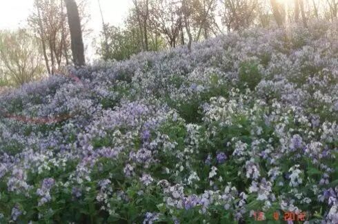 阳历的三月中旬到四月中旬,农历的二月底到三月中旬,正是我国绝大多数地域盛春之时。这时百花纷纷盛开,渐呈万紫千红景象。 而二月兰在长达一月的花期里,伴了多种春相继开放的过程。 历来,人们多有美誉相赞报春的使者迎春、妖娆的桃花、粉白的杏花、雪样的梨花,还有馥郁的丁香、高雅的鸢尾、妩媚的海棠等等,其千姿百态,次第打扮了春天。 而却少有人赞美它——已是不知何时,不动声色占有了春天主调的二月兰。 而正是这紫色的二月兰,不容置疑地映入每个赏春人的视野。 因为喜欢紫色,喜欢着紫色花朵,我注意到应该是2012年的春天,盛春之时,吃惊地发觉满世界、满视野成了紫色的花海。 你走到马路上,仿佛一夜间,发现小城的大街小巷远远近近的绿化带、公路边、角落里、公园里,树林边……于山坡上、树木下、河湖边、甚至楼前楼后,兀地开遍了那种紫色的花儿,到处点缀着片片迷人的紫。 这令人吃惊。 这紫色的二月兰,不像梨花那么素净得令人不忍近前,不像桃花那样粉艳得招蜂引蝶,不像杏花那样白得犹犹豫豫暧昧不决,不像迎春那样黄得不由分水耀眼,也没有海棠的丰姿绰约……它紫着,这色调不浓不淡,柔和内秀、不夺人目也不期艾自怜、高贵浪漫又如梦似幻。 总以为紫是那种优雅着,神秘着,不轻易得到的美丽,不想,它有朝一日占满了整个盛春。 公园内: 树林中: 水边: 坡上: 少水的混凝土墙根: 跟大树同根: 新滨公园石溪畔: